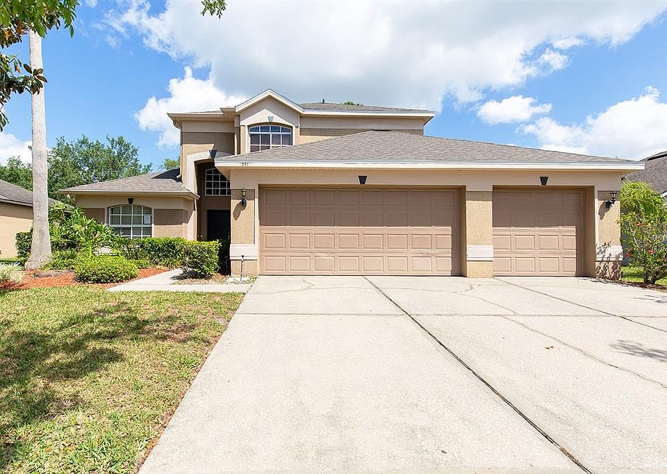 Welcome! This inviting two-story home boasts a brand-new roof, offering peace of mind for years to come. The property features 2,004 square feet of living space, including a kitchen, dining room, living room, loft, and a split-bedroom floor plan with 3 bedrooms and 2.5 bathrooms. The split-bedroom design allows everyone to have their privacy while its cohesive living spaces create the perfect environment for quality time or binge-watching your favorite TV show. The living rooms' soaring ceiling and wood-burning fireplace add to the spacious yet cozy atmosphere, enhancing this residential retreat. The screened lanai adds an extra dimension to the home, creating a versatile outdoor living area protected from the elements throughout the year. Other standout features are the three-car garage, location, and community. The gated community of Wesmere offers residents multiple recreation courts, a playground, and a pool, and it enjoys the convenience of a Publix-anchored shopping plaza and a fire station across the street. Schools, public services, numerous activities, shops, and restaurants are within quick reach. With a new roof and its great location, residents can enjoy peace of mind and focus on making memories for years to come. Schedule your visit today!