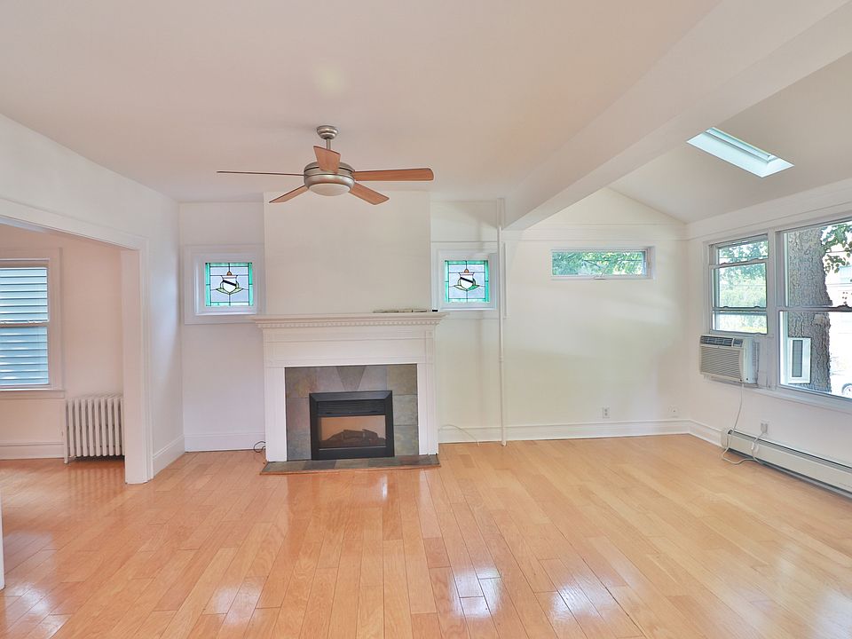 Welcome to a sun-drenched 3-bedroom, 2-bath colonial tucked in the heart of desirable Rutherford. This lovingly maintained home blends classic character with beautiful updates, including skylights that pour natural light into the spacious living room and dining area. Step inside to find gleaming hardwood floors, a bright and modern kitchen, and a flexible layout perfect for everyday living or entertaining. Upstairs, you'll find 3 generously sized bedrooms and a full bath. The full basement provides generous storage, laundry, and future potential. Enjoy a private backyard, off-street parking, and unbeatable access to NYC transit, local schools, and vibrant downtown shops and dining.