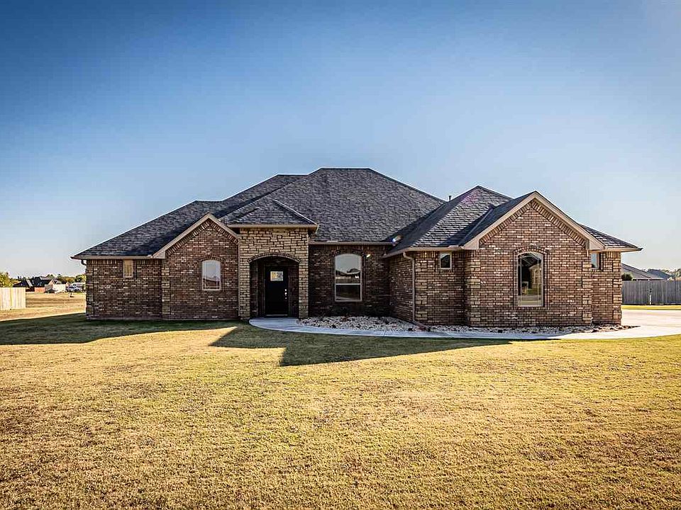 Absolutely beautiful Elgin School District home. This 3 year old home on a large .8 acre lot offers 4 bedrooms, 3 full bathrooms and a 3 car garage. You couldn't ask for a better location! It is a quick 5 mm drive to Ft Sill north gate, 5 mins to tourist favorite Medicine Park where you can enjoy dining, entertairnment, and fishing. 3 minutes will land you on the banks of gorgeous Lake Lawtonka. 7 mins to one of the best free national parks where the buffalo roam. 12 mins to Elgin, 15 mins to Lawton. This beautiful home will wow you from the time you walk in the inviting entry way. The generous size living area waits just ahead with beautiful gas fireplace and large picture windows that let in the beautiful Oklahoma sunshine. The beautiful and well appointed kitchen will provide countless hours of cooking enjoyment for those family gatherings. All bedrooms are a generous size but you'll especially love your primary en suite where you have room for a king size bed as well as a relaxing reading area. The primary bath is huge and absolutely beautiful and you absolutely will be thrilled with your large walk in closet. The closet is adjoining the spacious laundry room. This home offers so much storage space and the backyard sunsets are stunning. Call or text listing Realtor, Sheila, today to arrange your private showing appointment. (580)574-0684. I can't wait to meet you!