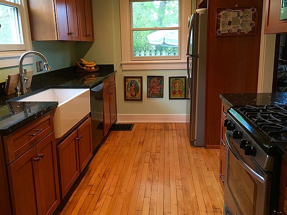 Simply delightful West Side home with all the character and charm of its era! Large wood windows and original wood trim, as well as lovely hardwood floors throughout the entire home. A set of French doors lead into the living room which opens into the light filled formal dining room. The dining room leads into the updated kitchen with granite counters, farmhouse sink, new cabinetry, and stainless steel appliances. The basement is partially finished and provides additional living space, perfect for a family room, playroom, or private office. Adorable little fenced back yard is private, beautifully landscaped, and boasts a new wood deck and storage shed. Enjoy the summer breeze on the huge covered front porch or take a 5 minute stroll to Jefferson Market or Waterworks Park. Located on a quiet street just 5 blocks from downtown.