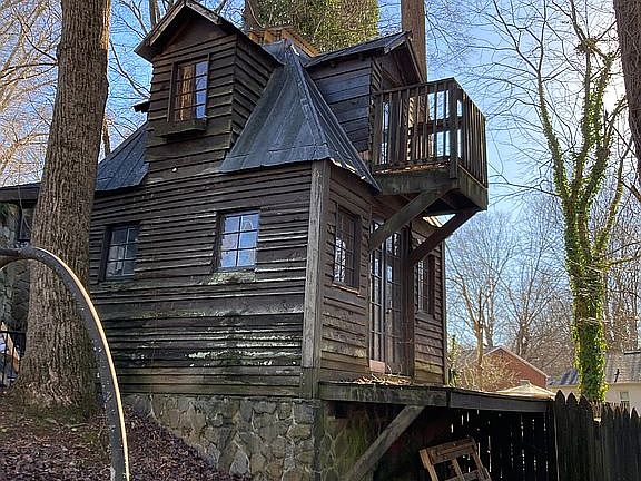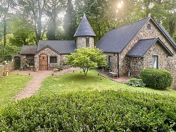 Original home built in 1951. Remodeled and entire exterior, including two story turret, rocked in 1994. Two car stone carport was built at this time as well. Owners have done improvements on castle such as two new HVACS, new hot water heater, sanding and finishing of several floors, new Luxury Vinyl Tile in the kitchen, some interior painting, outdoor hot tub renovated into a fish pond with castle fountain. Floors and ceiling in the shed have been replaced and turned into a two level cute She Shed, artist studio or workshop. Owners are using castle as two bedrooms but the two extra rooms could be converted into bedrooms. One of the extra rooms is so well lit that it would make a beautiful plant filled Florida room. Our home is one of the few castles for sale in NC. Certainly the most reasonably priced. Owners are selling the castle as is