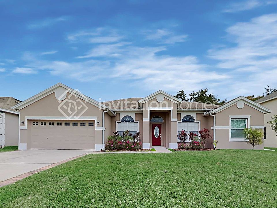 Home Features and Amenities: Air Conditioning, Garage, Granite Countertops, Kitchen Island, Long Lease Terms, Luxury Vinyl Plank, Open Floorplan, Patio, Pet Friendly, Primary Bedroom on Main, Recessed Lighting, Single Story House, Smart Home, Stainless Steel Appliances, Tile, Walk in Closet, W/D Hookups, and professionally managed by Invitation Homes.