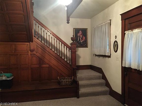 Character and Charm can best describe this Century home on an acre of land with a huge wrap around porch to sit on and watch the Struthers Parade! Grand foyer entry with 10 ft ceilings and 9 ft Oak baseboard showcasing a spectacular wrap around Oak staircase with Bishop seats, Formal living room with fireplace, Family room with 9 ft. leaded glass window, Elegant Dining room with Oak built in china cabinet, leaded windows and solid oak pocket doors, Eat in kitchen with island has original cabinetry, new plumbing fixtures and includes appliances. A first floor office (formerly maids quarters) and half bath round out the first floor. There are four wonderful sized Bedrooms upstairs and a full bath with original six foot Claw foot tub, built in cupboards, Plastered attic on third floor, the basement is a century home basement but has a shower and laundry facilities and its clean, 2 car detached garage, gas grill with gas line to home, All original glass in doors, decorative radiators, some replacement windows, Possession negotiable Porch swing stays, Window coverings stay, Home warranty, New roof, Newer large capacity hot water tank, newer boiler, furnace maintained annually, Extra insulation in walls, floors, Large Lilac bushes on property, Maple trees, Red maple trees and Oak trees on property,This ones a forever home!