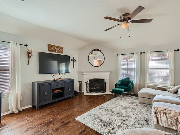 The 3/2, one-story home you've been waiting for has just hit the market in New Braunfels! Located on a greenbelt, you are sure to enjoy your time out back under the beautiful pergola and patio. Inside you'll find a large kitchen with granite countertops and tile backsplash that opens towards the living room- perfect for those who love to entertain! The wood burning fireplace adds to the charm of the home and makes for some cozy winter nights. Real hardwood floors continue from the living room into the primary bedroom and walk in closet. The primary bath comes equipped with double sinks, bathtub, and recently renovated shower. Water heater was replaced in 2023. All appliances and the TV mounted in the living room is negotiable. Don't wait! Come see this one today.