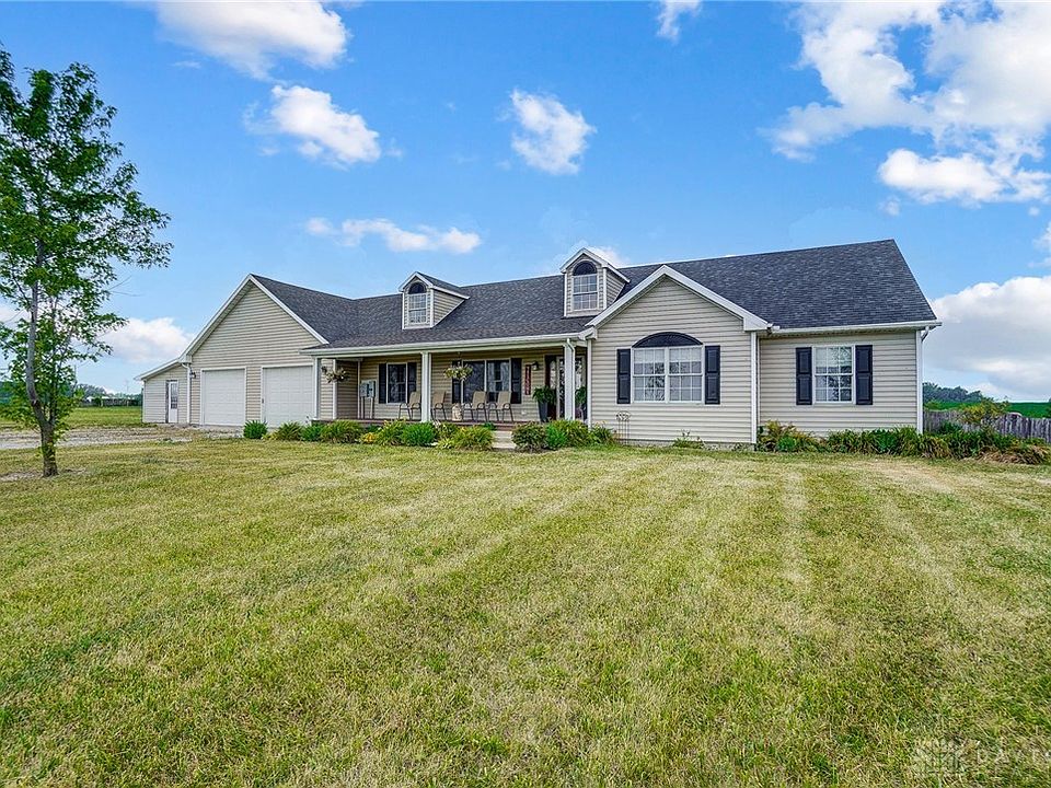 Welcome to 341 rangeline! This home has it all - quiet country road, acreage (5.22) and all of the modern amenities! Walk into the spacious open layout floor plan (great room, kitchen and dining area) - a great space for hosting! Hardwood flooring, pella windows and a whirlpool tub are just some of the many nice upgrades this home has. Rest easy with updated hvac (2023), new patio (2021) and roof (2022). Plenty of extra space with the oversized 3 car attached garage, attached utility garage and finished office space! Sit on the new back patio and look out over 5 beautiful acres, there is plenty of room for everything here!