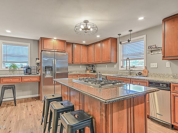 In 2019 this home was completely remodeled with new electrical, new plumbing ,A/C ducts, extra insulation in walls for heating/cooling purposes, and soundproofing as well. If you are looking for a move in ready home, this may be the one. Enjoy an open kitchen with granite countertops, natural light and a double oven. The island with a gas cooktop allows entertaining to go to the next level. As you cook dinner, enjoy watching the fireplace with beautiful stone surrounding it. This home offers two bedrooms, each with their own full bathroom. Each bathroom has been tastefully updated as well. Off of the hallway you will find a laundry room with updated cabinets above the washer and dryer. The backyard is perfect to enjoy cookouts on your concrete pad where tables and chairs and grills will have tons of room. Need storage? The storage building in the back conveys and there is a full unfinished basement with exterior and interior entrances. Level front and back yard - difficult to find in East Tennessee and conveniently located between Johnson City and Kingsport. Make your appointment today.