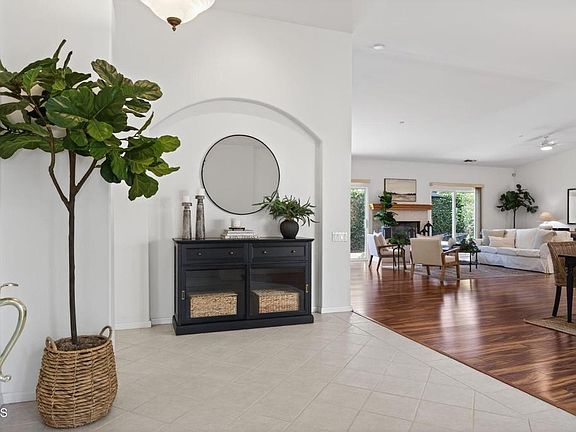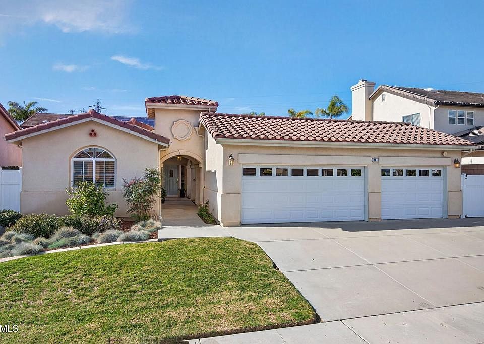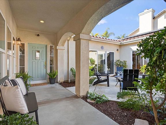 Rare Single-Story Home in Ventura's Coveted Presidential Estates - Welcome to this lovingly maintained one-story residence built in 2000 and offering an expansive 2,410 sq. ft. This spacious 3-bedroom, 3-bath home seamlessly blends comfort, style, and effortless indoor-outdoor living. A charming private front courtyard, complete with mature Plumeria trees, sets the tone--a perfect spot for your morning coffee or a remote work break. Step inside to a light-filled living area featuring a cozy fireplace, tall ceilings, luxury vinyl plank flooring, and recessed lighting. Multiple sliding doors open to the landscaped yards, creating a wonderful flow for entertaining and bringing the outdoors in. The open-concept layout includes an inviting dining space overlooking the courtyard. Designed for the home chef, this special kitchen boasts Viking Professional double self-cleaning convection ovens, a Viking 6-burner gas range with hood, a built-in SUB-ZERO refrigerator, and a Kenmore stainless steel dishwasher. Additional highlights include a walk-in pantry, center island, eat-in bar, abundant cabinetry, a built-in desk, and a charming breakfast nook with courtyard views and direct patio access. The primary suite is a peaceful retreat with its own slider door to the backyard, a generous walk-in closet, and a spacious bath offering dual sinks, a soaking tub and separate shower. Two additional guest bedrooms feature mirrored closet doors and share a Jack and Jill bath with dual sinks. A third full bath adds extra flexibility for guests. A dedicated laundry room with plentiful storage and included washer and dryer makes everyday chores a breeze. The home also features a water filtration system, soft water unit, A/C, and owned solar panels--a thoughtful bonus for energy efficiency. The three-car garage provides ample parking and extra storage space. This property is ideally located near Juana Maria Park, Kimball Park walking paths, Harmon Canyon hiking trails, shopping, the grocery store, restaurants, Simone's Coffee Shop, and the 126 freeway--this rare single story gem offers comfort, convenience and an exceptional Ventura lifestyle!