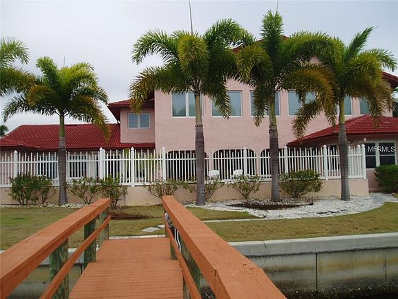 Enjoy the spectacular Harbor view in this 4 bedroom, 4 1/2 bath home with over 6100 sq. ft. of living space. Whether relaxing by the pool, fishing off your dock or boating in Charlotte Harbor or points beyond, you will have found Paradise. This large family home, perfect for entertaining, offers a formal living room with wall of stone and bamboo flooring, dining room, bar room with bamboo flooring and exquisite granite counter bars, family room, den/office, and a bonus room off the master bedroom that's perfect for an office, hobby or workout room. Take the elevator or stairway to the second level master suite. Adjoining the bedroom is a multi-use room. Exercise, office, hobby area. You decide! There's a large walk-in closet and dressing area and the spacious bath offers jetted tub, walk-in shower with glass block wall, bidet and two separate sink areas. The pool, deck, and lanai area are spacious and there's also a full pool bath. The oversized garage will easily hold two cars, bikes or work area and there are front and rear garage doors so you can drive through to your circular driveway. Concrete seawall replaced in 2012. 3 zone a/c and 3 hot water heaters. Many more extras so make an appointment to see. Close to hospitals, shopping, restaurants, and parks.