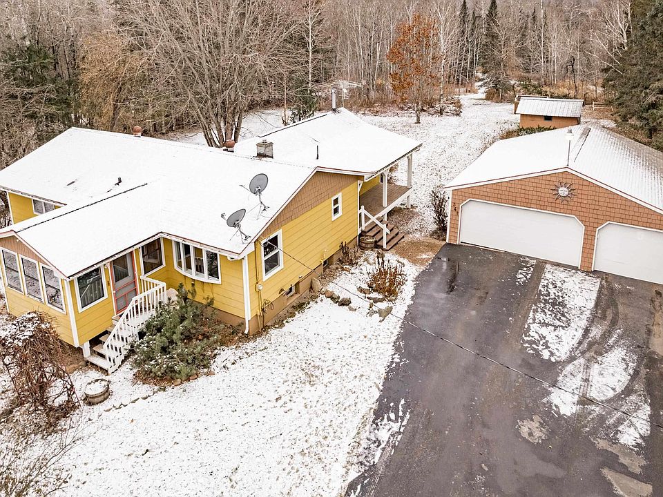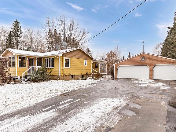 Discover the perfect blend of tranquility and sophistication in this inviting 3 bed, 1.25 bath residence on a sprawling 5-acre lot. Nestled in the heart of nature, yet minutes away from local amenities, this home offers a lifestyle of comfort and convenience. Step into a world of warmth and natural light as you enter the living room, featuring a cozy wood stove and large windows that bathe the space in sunshine. The adjacent kitchen forms the heart of the home, offering a seamless flow to the dining room and three season porch for both everyday living and entertaining. The three bedrooms provide ample space for rest and relaxation, while the well-appointed full bath ensures convenience for the whole family. The lower level unveils an additional layer of luxury with a spacious family room, perfect for movie nights or gatherings. Unwind in the sauna with a convenient shower, creating your own personal oasis. Practicalities are covered with dedicated storage space and a well-equipped laundry area. Embrace the outdoors on this expansive 5-acre property, complete with a fenced garden, perfect for cultivating your own vegetables and flowers. Revel in the charm of the mature apple tree and the serenity of the surroundings. The property also boasts a 3-car detached garage and a shed, providing ample space for storage and hobbies. Additional features include a newer driveway, adding a touch of modern convenience to the property. This residence harmoniously blends comfort, style, and natural beauty. Whether you're entertaining in the open living spaces, unwinding in the sauna, or enjoying the great outdoors, this home offers a lifestyle that's both elegant and practical. Esko school district.
