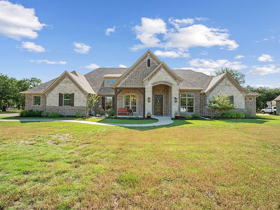 Brock ISD! Gorgeous custom home on tree filled acre and Brock ISD! Home includes formal dining, study with closet, large kitchen with island work space, 4 bedrooms 3 baths, second living game room downstairs, master retreat with jetted tub, separate shower, huge master closet and 10' ceilings. Home features hand scraped hard wood flooring, granite counter tops, stainless appliances and custom cabinetry. Screened in covered back porch area that is perfect for entertaining! The garage also includes a Vista lift with 300+ square footage of extra storage in the attic. This home has meticulously maintained.