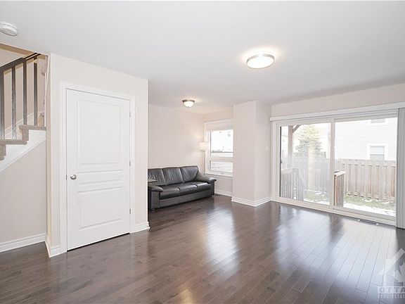 Modern and unbeatable like new condition. Stunning townhome Model Jericho by Richcraft Located in Longfields Barrhaven! This Energy Star home offers 1,825 sq ft of living on 3 fully finished floors, with 3 beds, 3 baths and hardwood flooring throughout all levels. Main level features a large recreation area/family room, office nook and direct access to the private backyard. 2nd level has an impressive 9 feet ceilings, open-concept layout, sunken great room with oversized windows and a formal dining. Gourmet kitchen comes with upgraded cabinets, stainless-steel appliances, pot lights and massive quartz island along with a separate eating area. enjoy the fresh air at the 2nd floor balcony with natural gas hookup for BBQ. 3rd floor has a massive primary bedroom with an ensuite bath, 2 proportional sized beds, main bath and laundry area. Unfinished basement offers a utility room and additional storage. Walking distance to bus-stop and parks. Also Close to many amenities, gyms and shopping.