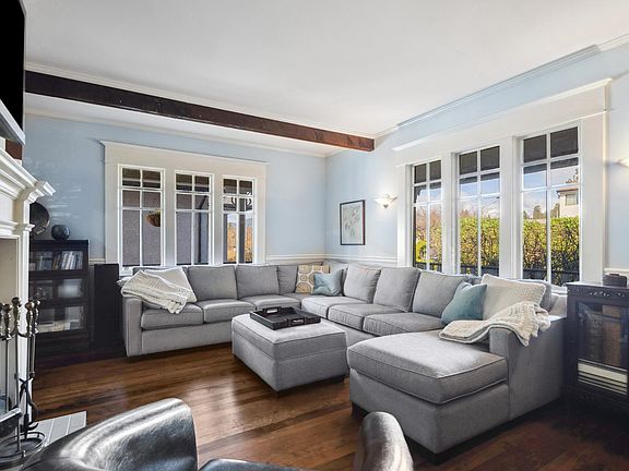 Lovingly maintained heritage home in Central Lonsdale, blending historic charm with modern updates. Known as the Cant Residence, this Edwardian home was built in 1911 and expanded in 1914. Notable features include a wrap-around verandah, sleeping porch, and original fir floors with millwork and wainscoting. The grand foyer leads to an open-plan living/dining area with a wood-burning fireplace and stained-glass window. The modern kitchen boasts stainless steel appliances, a large island, and opens to a sunny deck. Upstairs offers 3 bedrooms, a 4-piece bath, and a balcony with mountain views. The fenced backyard includes a grassy area, tree fort, and EV-equipped parking. Steps from Carson Graham Secondary, parks, and close to all Lonsdale amenities.