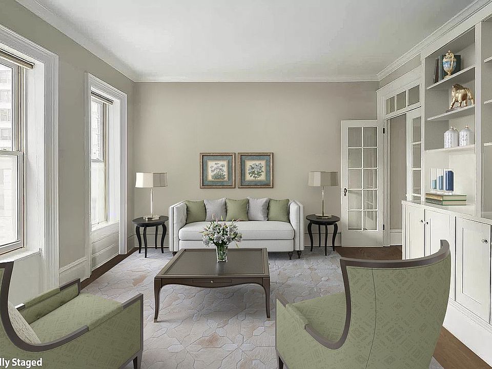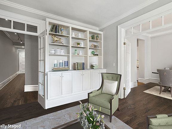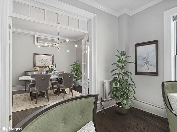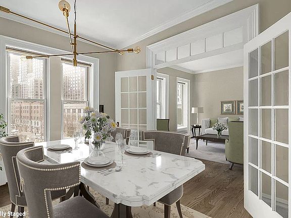 The spacious dining room and living room are separated from one another by beautiful custom French Doors. These doors not only add to the aesthetic appeal of the property but also provide you with the flexibility to transform either of the rooms into a second bedroom, office, or den, depending on your needs. This apartment boasts the ultimate comfort of central air conditioning and the added luxury of recessed lighting.