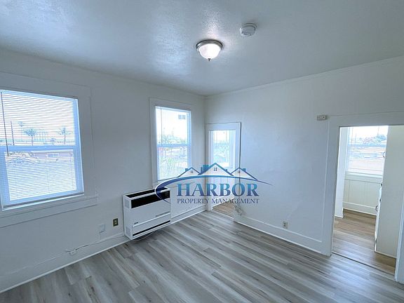 This studio apartment is located in San Pedro and offers a view of the Vincent Thomas Bridge. The unit features vinyl flooring throughout, a functional layout, and an open living area. The kitchen includes cabinet space for storage, and one assigned parking space is included.