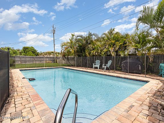 Check out this updated 4 bed/2 bath beachside pool home only a few blocks away from the ocean! Home features an open concept floor plan, updated kitchen, granite countertops, SS appliances, remodeled bathrooms, wood look tile flooring, new roof 2024, AC 2019, energy efficient windows 2019, hurricane shutters for storm protection and a 100% paid for home solar system for energy and cost savings. Exterior of the home is equipped with a nice size pool, brick paver decking large screened area for entertaining, fully fenced yard. Awesome location on a dead end street and only ½ mile to the nearest beach access. Easy access to schools, shopping, restaurants and Pineda causeway. What a great opportunity to experience beachside living as a full time resident or your vacation getaway!