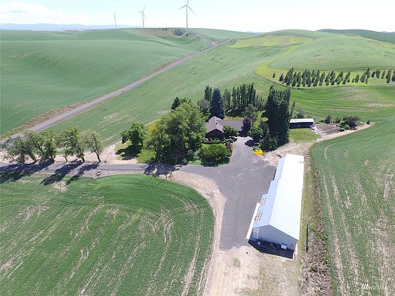 Stunning doesn't adequately describe this unique home with 13 acres and a one-of-a-kind view. Just 10 miles from Dayton, this property is extremely private, with panoramic views and plenty of room for livestock! The open-concept living and dining room is framed by a fossil-embedded sandstone fireplace and large windows, which allow for breathtaking views of deep draws followed by miles of rolling wheat fields and even Steptoe Butte! The upstairs features an office overlooking the entryway, and a game room with its own pool table. The primary bedroom and two guest rooms are on the main level, with a secondary primary suite downstairs. The property has several great outbuildings, including an insulated shop w/ heating and air conditioning!