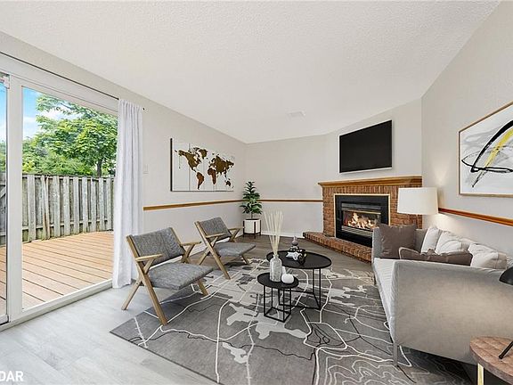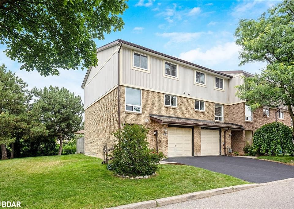 Welcome to this lovely updated 3 bedroom, 2 bathroom END UNIT condo townhome, offering the ultimate low-maintenance lifestyle in a family-friendly complex. New vinyl flooring throughout, fresh paint, new carpet on stairs, this home is move-in ready so you can spend less time on upkeep and more time enjoying life! This house also offers inside garage access and main floor laundry. The family rm on the main floor features gas fireplace with walkout to a freshly painted deck and fenced yard. Eat in Kitchen with pantry, separate dining rm and good size living rm on the 2nd floor offers a great space for family gatherings or enteraining friends. On the 3rd floor you will find 3 spacious bedrooms and a large landing for a desk/sitting area. The no-maintenance exterior means no mowing the lawn. The outdoor space to the side of the unit is one of many benefits to being the end unit. This complex also offers a refreshing OUTDOOR POOL, with a lifeguard on duty, ideal for summer fun and relaxation. Convenience is at your doorstep! A convenience store is just around the corner as well as other amenities a short drive away. 5 minute walk to St. Nicolas Catholic Elementary School (French) and Robert Baldwin Elementary School and parks. This property blends comfort, convenience, and community. Dont miss your chance to own in one of Miltons most sought-after family-friendly neighborhoods. Book a showing today! ** some photos are virtually staged **