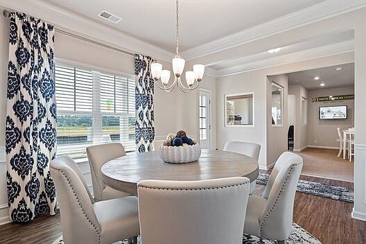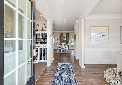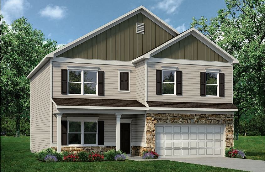 The McGinnis plan at Winston Place, by Smith Douglas Homes. The McGinnis offers a two-story floorplan with a welcoming wide entry way. This plan offers a study for working from home. Both the kitchen and family room live to the rear of the home, with convenient access to the yard from the kitchen area. Upstairs, the owner's suite with a very large walk-in closet, sits to the rear of the home. Three secondary bedrooms, each with walk-in closets and a large secondary bathroom are all located off the open loft perfect for a workspace, playroom or hobby space and there you'll find an ample laundry room.