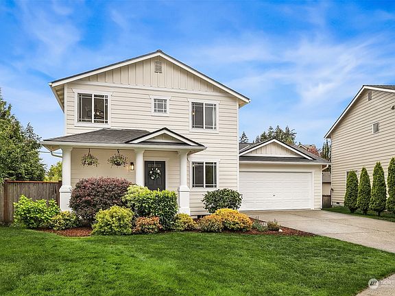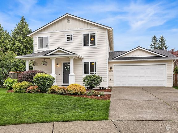 Move-in ready, charming 2 story farmhouse cottage in quiet cul-de-sac! This 3-bed, 2.5-bath home features brand new James Hardie siding, a new 50-year composition roof, and fresh interior and exterior paint. Bright updated kitchen boasts quartz countertops, a farm sink, and stainless steel appliances, including a new gas range. Enjoy the luxury of spa-like bathrooms with new fixtures, a walk-in shower in the master, and a deep soaking tub in the guest bath. Main floor also has a den/flex/home office. Beautiful LVP flooring and spacious bedrooms with new carpet, and a fully fenced backyard. Very close to North Creek HS, with convenient highway and shopping access.