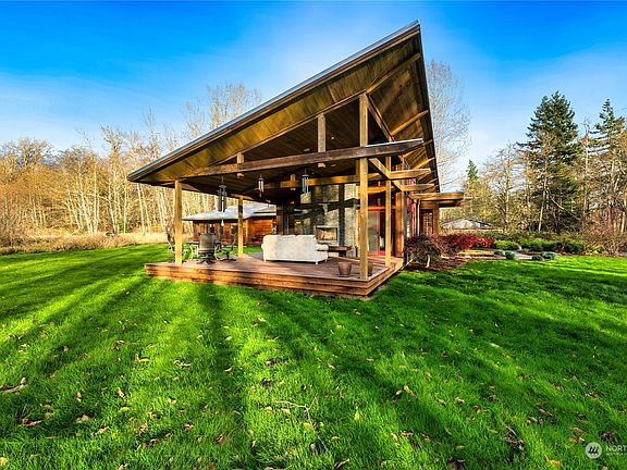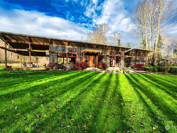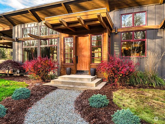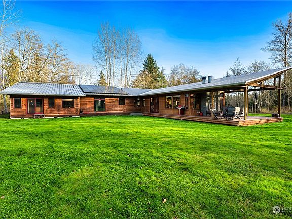 This NW Contemporary Home is a statement piece! Designed by Haven Design Workshop, this architectural beauty was built w/CedarMillwork, Slate Entry, Wood Fireplace w/ gas assist & Trombe Wall of Quartzite Ledge Stone, Radiant Floor Heat, 10KW Solar Package, Asian Rosewood Flooring, Metal Clad Wood Windows, Kitchen has Custom Cabinetry, Catseye Honed Granite, Kohler Faucets throughout, Shed Designed Metal Roof, Ensuite w/private entry, walk-in, stone tile shower, soaker tub w/private view, Well w/water treatment system, wired for whole house generator backup, Alarm System, Cedar lined deck w/wood fireplace, under cabinet lighting, finished & heated 2 Car Garage, RV Parking, 438sf ADU studio w/loft, mini kitchen, 1 Bath, & Laundry.