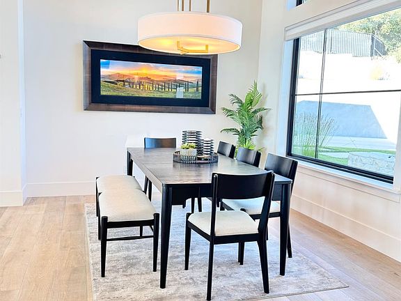 Discover a secluded sanctuary on a natural 2.5 acres, offering tranquility and serenity. This recently constructed luxury home boasts a luxurious main-floor primary suite designed for ultimate relaxation. The spa-like bathroom features radiant heated floors, a spacious dual-head shower, a deep soaking tub, and expansive windows that flood the space with natural light, creating a serene and rejuvenating retreat. Blending timeless elegance with modern efficiency, including solar power, multi-zone HVAC, and a tankless water heater. The interior dazzles with soaring ceilings, marble countertops, a secondary prep kitchen, a 14-foot statement fireplace in the living area, and another in the master suite. Each bedroom offers en-suite convenience and walk-in closets, while dual laundry rooms on both floors add practicality. Recent upgrades include automatic shades on both patios, hot tub, garage cabinets & overhead storage, oversized fans in living room & patio, new window coverings throughout. The outdoor spaces are equally impressive, with sweeping downtown views, an infinity pool, spa, elegant fire elements and open spaces for entertaining or unwinding in style. This estate redefines luxury living with its thoughtful design and breathtaking surroundings.
