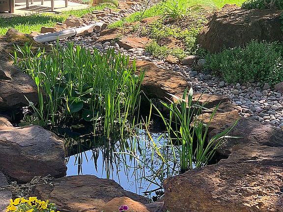 Totally Updated with dark hardwood floors, modern kitchen with double ovens, 2 dishwashers, Potfiller, and Calcutta marble countertops. Primary bedroom has a fireplace and French doors the open to a covered patio overlooking the Koi pond ( more pictures soon) Custom closet with extra storage and a stackable washer /dryer. The ensuite bathroom has an extra large walkin shower and freestanding soaking tub. The backyard is landscaped as to a Botanical garden feel. Winding walkway leads to the organic garden with apple and plum trees, blackberry plants, herb garden and more . Covered patio and a pond .One of a kind property. Almost one acre ! The childrens imagination is stimulated with the different corners of the yard. Whether its the dry creek bed ,where pirates hide; the garden where they pick out their veggies for dinner; chasing the wild bunnies; being superheroes flying on the zip line thru the trees. Open modern floorpan . Custom black steel doors. 2 fireplaces 3 car garage that is insulated and has air conditioning. Tornado shelter too. call about a buyers agent fee ( more pics coming soon) sq feet added during remodel