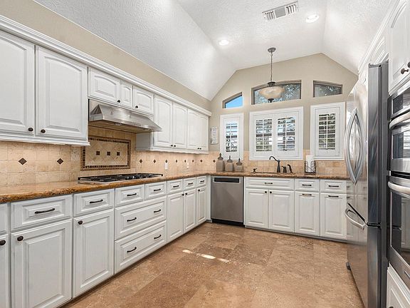 Outdoor kitchenLarge backyard oasisTravertine floorsGranite countertopsSpacious game roomAbundant counter spacePlantation shutters