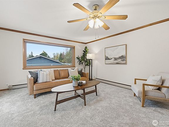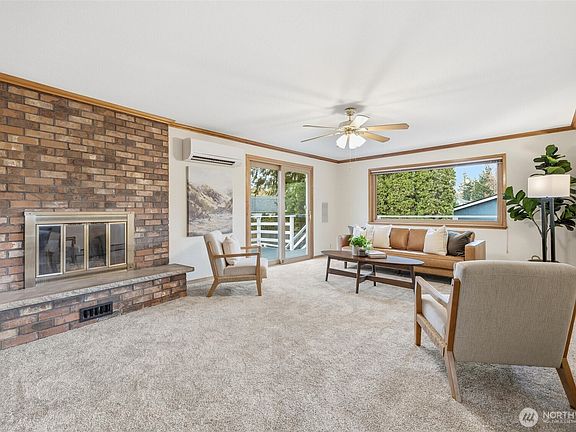 This Bellingham gem is ready to welcome you home! The main level offers 3 bedrooms and 2 bathrooms, filled with natural light. Enjoy a full chef’s kitchen with top-tier appliances and an original brick fireplace with access to the back deck—blending timeless charm with modern updates. The lower level features a second kitchen and bedroom with private entry, ideal for multigenerational living or rental potential. Situated on a large, level lot with fruit trees, deck access, and a storage shed. Recent upgrades include vinyl plank flooring, carpet, exterior paint, privacy fence, and an updated bathroom.