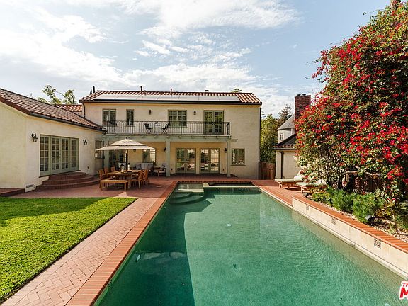 Discover this exquisite Spanish estate tucked away on a quiet, tree-lined street in the coveted Lake Hollywood Knolls. Offering a secluded sanctuary of timeless character and beauty, this residence captures the essence of authentic Spanish architecture with thoughtful details and enduring elegance. As you arrive, custom Spanish tiles grace the front stairs and landing, highlighting the home's timeless charm. Inside, no detail has been overlooked. A formal foyer welcomes you into sunlit interiors where each room is generously sized and designed with both comfort and style in mind. Rich oak hardwood floors flow throughout, while custom wrought iron handrails add an unmistakable touch of craftsmanship and refinement. The main level unfolds seamlessly, revealing warm, inviting spaces meant for both everyday living and entertaining. The living room centers around a beautiful fireplace and opens through French doors to the stunning backyard, creating effortless indoor-outdoor flow. A formal dining room offers the perfect setting for gatherings, and the chef's kitchen impresses with custom cabinetry, high-end appliances, and abundant natural light. Two spacious bedrooms complete the downstairs, including one with direct backyard access through French doors, along with a beautifully appointed full bathroom. Outside, the grounds are truly spectacular. The yard features California-inspired, drought-tolerant landscaping surrounded by lush greenery, mature bougainvillea, and two expansive lawns. A custom-built pool and spa serve as the centerpiece of this entertainer's retreat, complemented by multiple seating areas that invite relaxation and connection. Upstairs, two additional bedrooms include the serene primary suite, complete with a fireplace, sitting area, and an oversized balcony overlooking the verdant grounds below. Rare for California, the property also includes a spacious basement offering a temperature-controlled wine cellar and over 1,100 square feet of additional space not included in the home's square footage. This versatile area provides endless potential for storage and creative use, setting this estate apart from anything else in the area. With timeless details, effortless indoor-outdoor living, and an undeniable sense of tranquility, this home is a Spanish estate of rare caliber, exquisite, enduring, and one-of-a-kind.