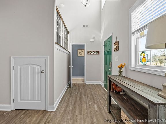 Welcome to 3410 Lockheed Ct, a charming 4-bedroom, 2½-bathroom home nestled on nearly one acre (.97) in the peaceful town of Wade. As you enter, you'll be greeted by a grand foyer with high ceilings, setting the tone for the spacious and inviting atmosphere that flows throughout the home. The main level features the primary suite, offering convenience and privacy. Upstairs, you'll find three additional bedrooms and a generously sized bonus/family room, perfect for movie nights, playtime, or relaxation. The kitchen is a chef's dream, equipped with sleek granite countertops, a generous breakfast bar, and a large pantry, making meal preparation and storage a breeze. Adjacent to the kitchen is a formal dining room, ideal for hosting special occasions and gatherings. Step outside to enjoy the screened-in back patio and fully fenced yard, providing an oasis for outdoor living. The 3-car side-entry garage offers ample space for vehicles and storage needs. With quick access to interstate 295, this home is conveniently located near Fort Bragg, shopping, and dining options. Experience the perfect blend of comfort, style, and convenience.