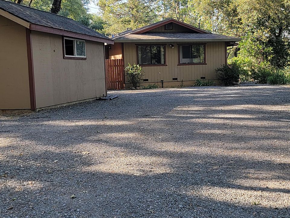 Fantastic location close in town but very private 3 bedrm and 3 full baths. 2 master suites and a bedroom and bath off the hall. All fresh paint inside and out, large deck with view and a ladnscaped and fenced backyard with a lawn and small garden. Central heat / air and a pellet stove. Nice kitchen with Corian counters, double oven, dishwasher, good lighting. 4 ceiling fans and hardwood floors. only downside is no garage but a large shed/shop and owner is going to build a 2 car carport. Tenants live there, DO NO DRIVE BY! The address is so you can look it up on google maps. all electric house, comcast available, no smoking or pot grows. 1 yr lease that is renewable. 1 month rent as security deposit, background and credit check. Must show proof of income. Tenant pays PGE,Trash, internet. Landlord pays water and sewer. Tenant must weed eat 100 ft all around the house and mow lawn or pay someone to do it. Pls call me to set up a viewing. Can't show til after the 10th. IF YOU WANT TO SEE, CALL ME. Don't just email.