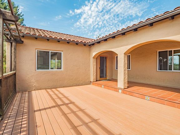 California Mission Style Home in one of Santa Cruz Counties best micro climates. The grounds are dotted with mature fruit trees and a natural landscape buffer. The 18,600 sq ft lot offers both privacy and the space to create your own outdoor experience. The home is ideally set up for entertainment and extended family. Wood floors, beam ceilings, an open kitchen with granite island and breakfast nook all add to the warmth and ambiance. Upstairs master suite with fireplace opens onto a veranda with expansive views. All of the pieces are in place to allow one to make this a private estate and personal sanctuary.