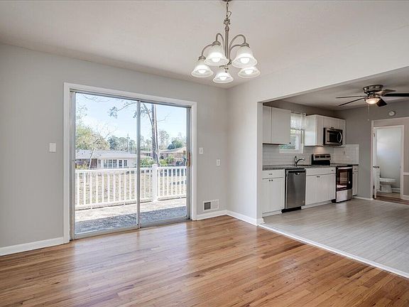 Welcome to this beautifully updated brick ranch, perfectly situated on a spacious fenced lot that offers both curb appeal and functionality, plus NO HOA. With its fresh paint, original hardwood floors, and all carpet removed, this home exudes timeless charm while being thoughtfully updated for modern living. Natural light pours into every room, highlighting the neutral color tones that create a warm and inviting atmosphere. The kitchen really makes it feel like a home, featuring granite countertops, a subway tile backsplash, and stainless-steel appliances, and yes, the fridge and washer/dryer stay! A window over the sink offers a serene view of the backyard, while the dining room opens onto a large back porch, perfect for hosting or enjoying peaceful mornings. The newer roof and HVAC system add convenience and reliability, while the converted garage provides a versatile second living space, ideal for entertaining, a cozy man cave, or even a potential fourth bedroom. The fenced backyard has plenty of space for play or gardening, and its very own powered shed. Located less than 5 minutes from the local elementary school and with easy access to the highway in under 10 minutes, this home combines comfort, convenience, and charm. Whether you're a first-time buyer, downsizing, or seeking a turn-key investment, this well-loved and meticulously maintained property offers unbeatable value. Don't miss this incredible opportunity to write up a deal!