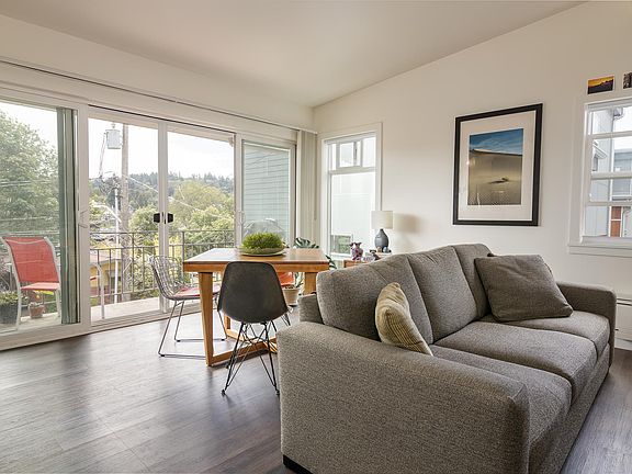 Private entrance leads to light-filled top floor 750sf apartment with no shared walls and windows on all four sides. Full sized W/D in unit. Sunny kitchen with good storage and dishwasher. Generous balcony with room for grill. Lots of storage, garden space in the yard. Very close to Burke Gilman Trail and the Ballard Locks. Includes 1 off-street parking space. Situated on residential dead-end street. 3410 NW Market St. No smoking, minimum credit score 650. Full list of application requirements upon request. Owner is licensed RE agent. Owner pays water-sewer-garbage. Tenant pays electricity. Landlord pays water, sewer, garbage.