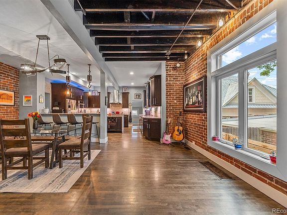 This stunning restored Victorian offers the best of Denver living, with breathtaking city views from the rooftop deck complete with a gas-lined firepit to enjoy those stunning Colorado evenings. Nestled in a quiet, walkable neighborhood, you’re just steps from LoHi’s top restaurants, coffee shops, and nearby parks. Inside, timeless charm meets modern convenience with soaring ceilings, exposed beams, and an open layout designed for today’s lifestyle. The main level features hardwood floors, a formal dining area, a mudroom, and a chef’s kitchen with upgraded appliances, double ovens, gas cooktop, water filtration system, and a large island. The living room boasts exposed brick and a cozy gas fireplace, while a dedicated office with built-ins is perfect for remote work. Upstairs, the primary suite includes a private deck, walk-in closet with custom systems, and a spa-like bath with oversized shower. Two additional bedrooms, one with city views, share a full bath and are close to the laundry room. The loft offers new windows, a wet bar, and wine fridge, opening directly to the rooftop. The finished basement includes a spacious family room, built-in bar with wine fridge, a non-conforming bedroom, and a half bath ideal as a guest retreat or rental space. Additional highlights: tankless water heater, newer HVAC, A/C, custom blinds, custom light fixtures, built-in closets, and hardwired connectivity throughout. The property is zoned to add an Accessory Dwelling Unit (ADU) and could be converted to an ADU in the future, offering excellent flexibility and potential for additional living or rental space. This one-of-a-kind home seamlessly blends classic character with thoughtful modern upgrades all in one of Denver’s most vibrant and walkable neighborhoods.