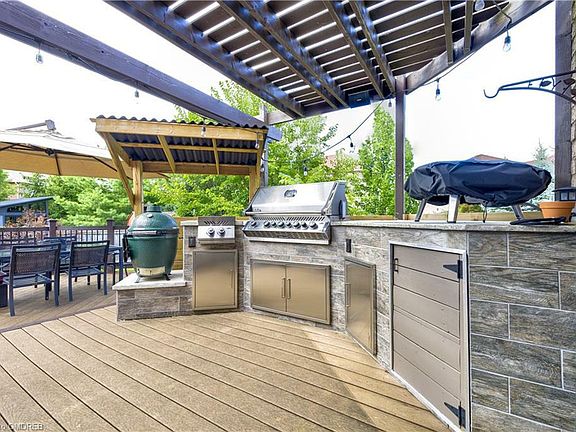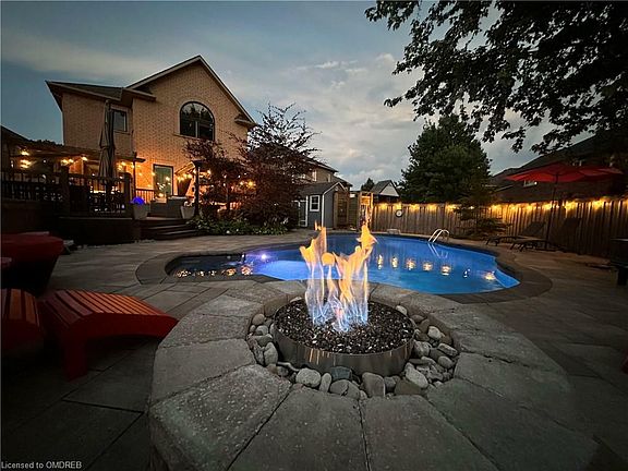LOCATION, LOCATION, LOCATION! Rarely offered, premium pie-shaped lot in sought-after Lakeshore Woods. ONE of the LARGEST LOTS IN LAKESHORE WOODS. This fabulously finished 4+1 bedroom executive home by Rosehaven showcases the Wilson model, w stunning Muskoka-like backyard complete w wireless controlled B-hyve sprinkler system. Enjoy the fall in your heated SALTWATER pool, installed in 2018, relax on your maintenance-free COMPOSITE deck complete w built-in outdoor kitchen, or join around the gas fire pit w plenty of room for friends & family. The pool house & outdoor shower ensure that all the fun stays outside. A large grassy side yard provides ample space for playing ball, relaxing or gardening. This truly is a rare find in one of Oakville's most desirable neighborhoods, offering a short WALK to the BEACH, dog park, waterpark, tennis courts, pickleball, skate park, ponds & miles of trails. Sought-after main floor layout includes a family room w gas fireplace & walkout from the kitchen to the spectacular backyard. The heart of the home boasts gorgeous QUARTZ countertops (2024) & newer stainless steel appliances. Recent upgrades include all main floor & second floor WINDOWS & SLIDING DOOR replaced by Nordic windows in '23 (approx. $40K), newer front door, furnace that is three years new, A/C heat pump installed in '23, new quartz countertops in powder room & lower level full bath, new pool heater in '22 & hardwired security CAMERAS controlled by ezviz app, all adding to the comfort and peace of mind in this fabulous home. Professionally finished lower level provides excellent office space, additional bedroom, rec room w rough-in for wet bar & gas fireplace, & no membership required as there is a home gym! On the second level, you'll find a spacious primary retreat with large walk-in closet and ensuite. 3 additional bedrooms & second full bathroom complete upper level. Don't miss your chance to call this house Home!