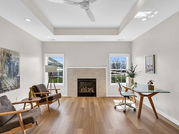 Welcome to your dream home nestled in a serene Urbana neighborhood. This meticulously designed, peaceful, 2 bedroom, 2 bathroom home boasts a perfect blend of modern luxury and functional elegance. Upon arrival, you'll be greeted by a thoughtfully appointed exterior and a fenced, professionally landscaped yard, giving this home standout curb appeal. Imagine waking up to a picturesque view of the sunrise and winding down with a view of the sunset. The open, protected southern view from the living space provides both privacy and abundant daylight. Step inside to discover an open floor plan customized by a local architect. The front door entry features a useful nook and a wide hall to the living space. The garage entry includes a mudroom/laundry room that offers extra storage and a laundry sink, making chores a breeze. The kitchen layout maximizes counter space with functional cabinetry and a large island. Cooking enthusiasts will appreciate quality GE Profile appliances. Every detail has been carefully considered, down to an electrical outlet in the pantry, perfect for a hidden charging station. Curated finishes include luxury vinyl plank flooring and quartz countertops throughout the home, Fireclay handmade tile adorns the kitchen and fireplace surround. The primary bedroom closet has a customizable Elfa storage system. Both bathrooms feature floor to ceiling tile, frameless glass shower doors and lighted anti-fog mirrors. Custom cordless cellular window shades allow you to effortlessly control natural light and privacy with top down and bottom up operation. The spacious two car garage is even equipped with a 50-amp electric vehicle charging outlet! The quiet neighborhood offers walking and biking trails, nearby South Ridge Park with a play structure and minimal vehicle traffic. But that is not all! This home is in the first year of the THINK Urbana Tax Abatement Program, allowing buyers to enjoy significant savings on property taxes for five years, saving close to 55% on taxes during this period. Don't miss this opportunity to own a truly exceptional property where luxury meets practicality and efficiency. Schedule your private tour today and start envisioning the possibilities of life in this stunning home!