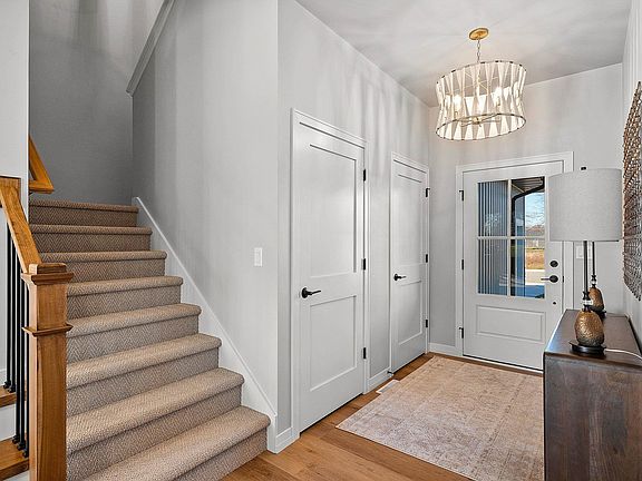 Beautiful 2-story home in convenient location! This spacious & inviting home offers an Office/Flex Room off the foyer & a cozy living room w/gorgeous floor-to-ceiling tile FP. Kitchen is impressive w/ white custom cabinets, large center island, tile backsplash, roomy pantry & SS appliances. Dining area leads to a covered porch where you can relax at the end of the day or entertain family & friends. Upper level features a spacious primary bedroom w/ large walk-in closet & ensuite w/ dual sinks & walk-in tile shower. Two additional bedrooms w/ abundant closet space and a full bathroom complete the upper-level layout. Other amenities include access to basement from garage & LL w/ egress windows & stubbed bath for future expansion. Lawn & some backyard trees already included. Move in & enjoy!