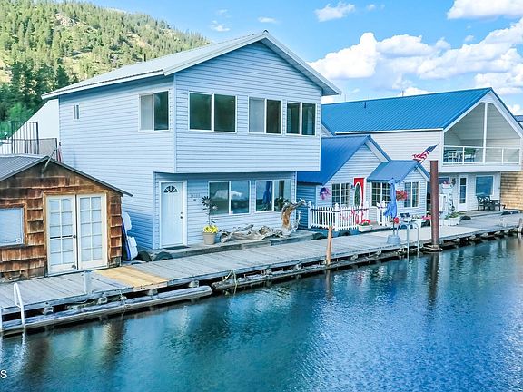 Here is your opportunity to own an incredible floathome in Bayview! This is a spacious home with awesome views and a large boat garage located in Scenic Bay Marina. Enjoy the unique floathome lifestyle while taking in the magnificent Lake Pend O'Reille views right off your front dock. Owner used this home year round so it has every amenity you could need. Full kitchen w/ DW, pantry, & brkfst bar. T&G woodwork on walls creates a warm inviting space throughout home. Spacious laundry room inc W/D. Bdrm & full bath downstairs. Upstairs is a fantastic huge A frame room that could be used as office, a LR or even another bdrm. The massive primary bdrm is truly the highlight of this home! Gorgeous T&G woodwork & Craftsman style beams in a vaulted ceiling creates a stunning entry. Lots of windows for views and sunshine! Full bath with jacuzzi tub, walk in closet and a craft room. 13 wall heaters & heat pump/split AC. Garage fits 22' boat. Comes partially furnished! Don't miss this one!