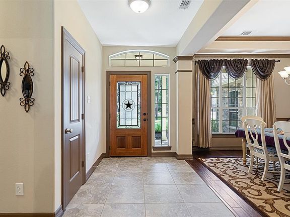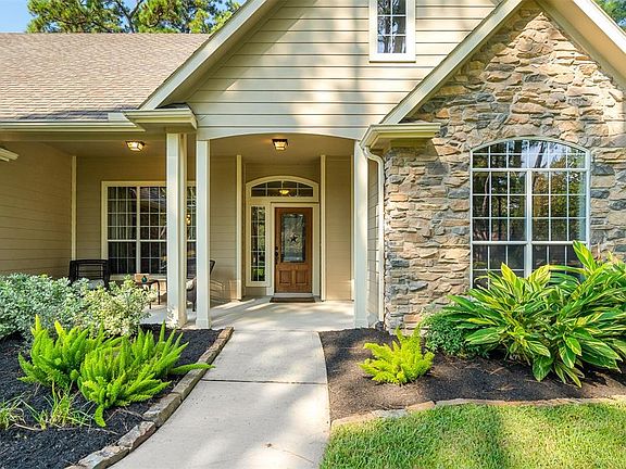 Amazing 4 bedroom 3 full bath home on a large wooded lot in the coveted Magnolia neighborhood of Westwood. Perfect for entertaining, the open floorplan features wood flooring in the dining room and beautiful 18" tile throughout the living room, kitchen, entry and hallways. Spacious kitchen with granite counters, stainless steel appliances, and sunny breakfast area opens to the family room with cathedral ceiling, gas log fireplace, and french doors leading to the back porch. Master suite features granite, double sinks, impressive oversize custom shower, and his/hers closets. All bedrooms downstairs and huge gameroom upstairs. Large covered back patio with ceiling fans to enjoy fenced back yard with mature landscaping and firepit. Full sprinkler system. Great location with easy access to I-45, The Woodlands, and Lake Conroe. Great Magnolia schools! Low taxes and HOA. No MUD.