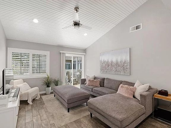 Highly updated upstairs unit. 2 Decks - one with peak ocean view. Air conditioning in primary bedroom. Waterfall 'leather' granite in open kitchen. Vaulted ceiling in bright living room. Large walk in showers in both bathrooms.