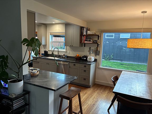 I purchased this home in 2020 and have spent the last five years renovating every floor. I had planned to live here with my kids until they moved out and so put a lot of care and thought (and money!) into the renovations. Due to unforeseen circumstances, I am moving to a different part of the city and looking to rent this starting July 1. I love this house and looking for someone(s) who will, as well. All attached shelving/desk/lights/magnetic board will remain with the home. The photos show the house with my furniture in it, but it will not be furnished. In addition, I will repaint the upstairs kids' rooms if the future tenant does not like the colors. There is a backyard cottage/DADU rented out separately. The unit does not share any space other than one of the two off-street parking spots and a mailbox attached to the front of the home. Amenities: One off-street parking space and plenty of on-street parking availability 1.75 baths Wood shop Under-stairs reading nook Ample storage Basement Family/Entertainment Room Lawton School District New heat pump w/electric furnace (very quiet) and AC One gas and one wood burning fireplace Exterior firewood storage w/almost half a cord of wood 12' trampoline available for purchase (otherwise I'll be selling before moving out) One block to #24 bus line, direct service to/from downtown in 20 mins Private fenced-in yard w/plenty of room for recreation and hanging out. Raised garden beds and one herb garden off the kitchen Recently installed irrigation system, including to herb garden and raised beds Detached storage area for yard tools (home will come with a handful of tools) Induction stove Dishwasher and garbage disposal Washer/dryer Quiet Magnolia neighborhood Very walkable with close proximity to Discovery Park, Metropolitan Market, Ballard Locks, and Magnolia Village. Dog park 1/2 block away Tenant responsible for water/sewer, electricity, and cable. Landlord pays garbage/recycling/compost. 12 month lease No Smoking Landlord will provide a fall and spring yard service, including irrigation winterizing/de-winterizing Tenant responsible for all other yard upkeep