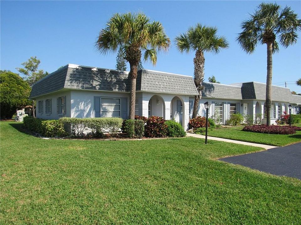 Cortez Villas...Wonderful 55+ community in West Bradenton. END UNIT, parking at your front door and a very short walk to clubhouse and heated pool. 2BR 2BA plus DEN that could be converted to a 3rd bedroom, closet in DEN. Indoor laundry room with newer stack washer/dryer, and new AC unit. Enclosed lanai with tile floor. Short drive to Gulf beaches. Very convenient to all shopping, banking, restaurants, and across the street from a public golf course. Great value in this single level villa. Call for a showing today!