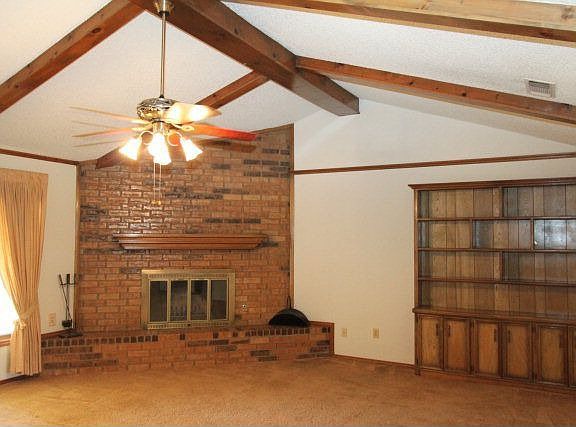 Wonderful 3/2/2 w/2 living areas. Large isolated master bedroom w/bath. Living room w/beautiful brick fireplace. Isolated master bedroom w/large walk in closet. Den/sunroom w/windows across south wall and new sliding glass doors to patio. Patio w/room for entertaining. Nice family size yard w/storage bldg. House has lots of storage. Don't miss this one! New heating unit.