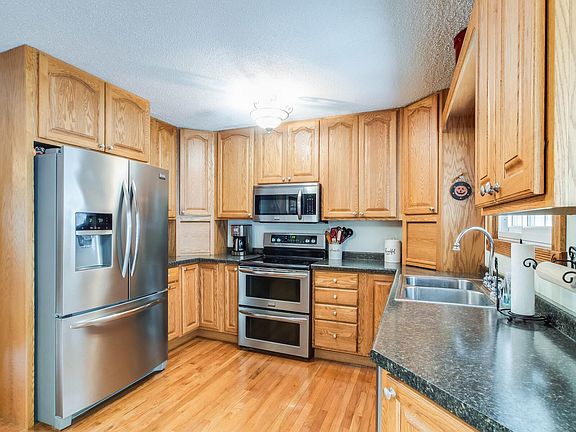 Meticulously maintained home situated on a private 1.29 acre lot which gives a country feel while still being close to town. Gorgeous landscaping creates plenty of outdoor space for your enjoyment featuring 2 deck tiers, a patio with a separate grilling area, fire pit, storage shed, and extra parking space. You'll feel right at home the moment you step in inside! Hardwood floors flow throughout the large living room, dining room, kitchen, and hallway. Solid 6 panel doors throughout the home. Quality kitchen was remodeled by The Board Store and has plenty of cabinet space. Finished basement features a cozy living area with a fireplace.