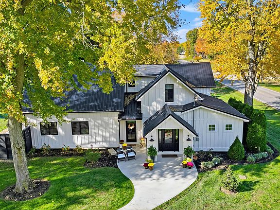 ''Pinecone Place'' is so much more than a home. It's a refuge....a place to unwind and be inspired. This renovated + 120 year old farm house on one acre has been lovingly and intentionally designed and decorated for maximum enjoyment. The interior boasts over 3000 square feet of tasteful perfection with 4 spacious bedrooms, including a stunning entry level primary suite with Mosaic marble hex flooring in the ensuite bathroom, a Walnut double vanity with quartz top, and a 4'x6' custom shower that you'll have to see to appreciate. The luxury designer touches and elegant finishes continue throughout the home, and will satisfy even the most discriminating buyers. Here are just a few more interior features to whet your appetite for this one-of-a-kind home - an inviting Hearth room off the kitchen with Jotul Wood Stove, Hanby Honed marble countertops along with Amish-built White Oak 10' island and painted white cabinets in the designer kitchen, a Monogram 36'' gas stove, Pella windows and doors throughout, 7'' wide-plank White Oak wood flooring on the main floor, and custom lighting in every room on both levels. The exterior feels like a luxury resort. The current owners have left nothing undone, including professional landscaping, multiple exterior spaces to relax by yourself or with friends and family, trees planted strategically for maximum privacy, and a 40x27 pole barn with 3 car garage and a dedicated shop and hobby area.