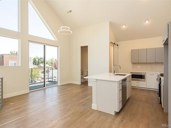 Welcome to 3411 Albion Street #7, a bright, modern townhome blending farmhouse charm with city convenience. This 1,363 sq ft residence offers clean, upscale finishes, vaulted ceilings, and a gated entry for added privacy and security. The main level features an open-concept kitchen with ample counter space that flows into the living and dining areas, plus space for a home office. Oversized windows and vaulted ceilings flood the space with natural light. The primary suite includes a walk-in closet and a bathroom with a double vanity and walk-in shower. Two additional rooms on the lower level offer flexibility for a guest suite, office, or workout space. Located in the heart of Park Hill, you're just minutes from downtown, Cherry Creek, City Park, and I-70. Enjoy a quick 10-minute drive to 9+CO's vibrant dining and retail, including Postino, Hopdoddy, and Trader Joe's and only 10 minutes to Central Park with its extensive parks, trails, and shops. The property is also less than a 5-minute walk to the 40th & Colorado Light Rail Station, offering easy access to DIA, Union Station, and beyond. Available for a 12-month minimum lease.