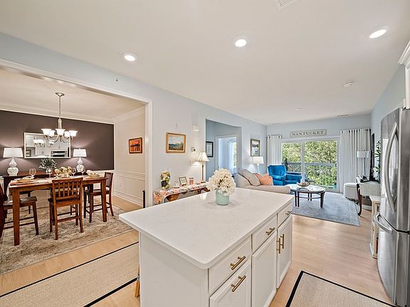Welcome to the active 55+ community of Pennington Crossing! This is a rare resale opportunity of a top-floor condo with a stunning view of nature! Situated steps from Walpole Center, you'll enjoy the charm of a New England town, along with convenient access to shopping, dining & the MBTA train into Boston. This light & bright home offers effortless one-level living, featuring an open plan living room & kitchen complete with island, stainless appliances & quartz countertops. This condo also boasts a separate dining room with beautiful wainscoting, ideal for entertaining. The primary bedroom includes 2 generously sized walk-in closets & a large en-suite bath with dual vanity & walk-in shower. With a second bedroom & full bath as well, there's room for a home office, den or guests. Storage will never be an issue here with a large in-unit laundry room & entryway walk-in closet. And let's not forget about the balcony, a private and serene retreat looking out over the tree-tops.