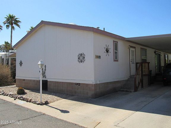 This lovely contemporary home is dry walled and has a textured finish, rounded corners, vaulted ceilings, 5 ceiling fans, along with 3 skylights, and dual pane windows. The enclosed raised porch on the east side of the home is 27' x 57'. The storage room is 9'7 x 9'2. Carport is on the west side of home and has room for three cars. Most rooms are tied together with elegant plank flooring with the exception of the two extra bedrooms which are carpeted. The kitchen opens to family area which features a wood burning fireplace and room for additional entertaining. The center island contains the sink and dishwasher. The rest of the kitchen has plenty of counter space and cabinets for storage. All appliances come with the home including a built-in microwave above the stove. Appliances new in 2022 including a new water heater. The dining area and the living area has numerous windows for that all important natural light. A door off the living room leads to the enclosed porch. A separate laundry room area inside the home is just off the primary bedroom. This large room has a great bath, walk-in shower and a walk-in closet. 55+ park