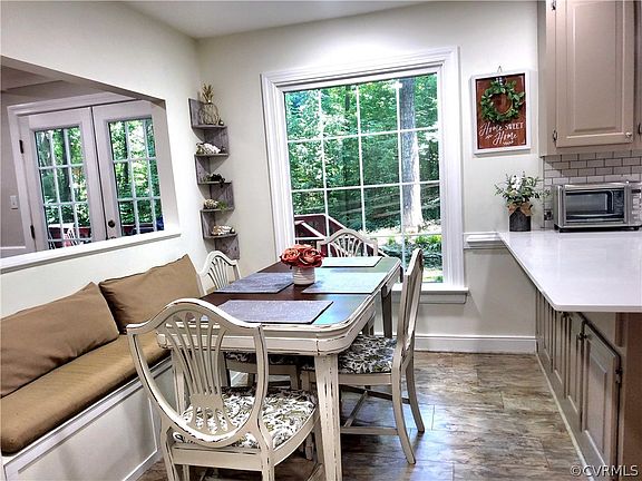 This traditional home in the Brandermill community has been updated with 4 Bedrooms and 2 ½ Baths and a Garage. Hardwood Flooring flows throughout the Formal Living, Dining Room, and Family Room which features a Brick Fireplace and Built-in Cabinetry. The Family Room opens to a large deck and a private tree-lined yard with beautiful rustic Hardscaping, a Patio, and exterior landscape lighting. The Kitchen is bright and sunny and features white Quartz Countertops, Tile Backsplash, Gray Wood Cabinetry, Stainless Steel appliances, 2 Pantries, a Corner Island, and a Built-in Banquette for added Eat-In Kitchen seating. Upstairs you will find the versatile Master Bedroom Suite which includes a Bonus Area that can be utilized in so many ways! There is also a large Walk-in Closet and an updated Bath with a Tiled Shower with a glass surround! There are 3 additional spacious bedrooms, an updated Full Bath, and a Large Walk-Up Attic. Make this your home and enjoy the top-rated schools in the area and all of the community amenities Brandermill has to offer. Additional upgrades include Replacement Windows (2014), Newer HVAC (2015), New Hot Water Heater (2019)
